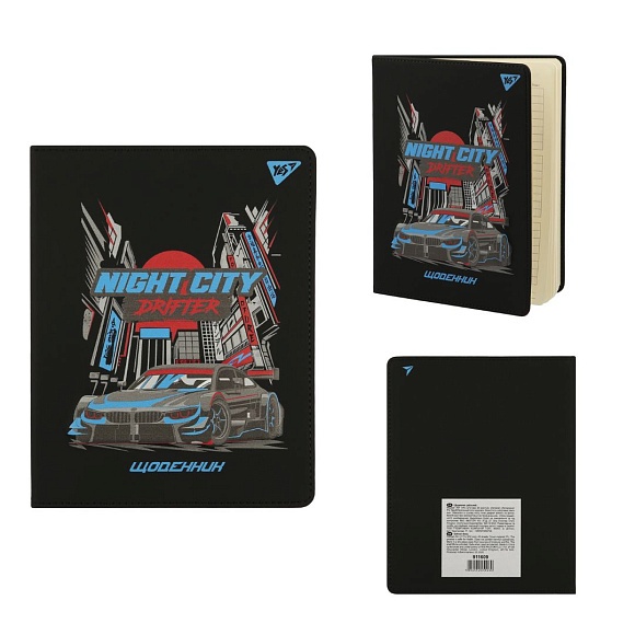 Опис Щоденник шкільний YES PU твердий Night city drifter, A5, 40 аркушів