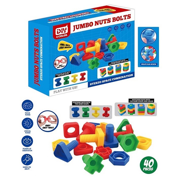 Конструктор B0010 на шурупах, болти, гайки, 40 дет., кор., 22-18-5,5 см.