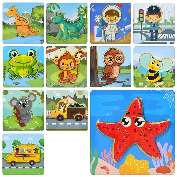 Дерев'яна іграшка Пазли MD 1974 4 дет., мікс видів(тварина,транспорт,морськ.мешканець,динозавр),кул.