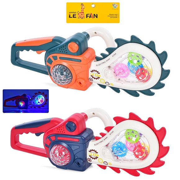 Опис Бензопила 9709c шестерні, рухливі деталі, 2 кольори, муз., світло, бат., кул., 40-20-10 см.
