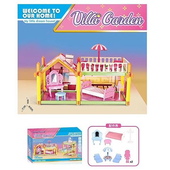 Опис Будиночок ABL1055 36,5-17-18см., меблі, лялька 2 шт., 65 дет., кор., 38-23,5-8 см.