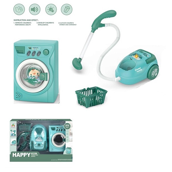 Набір побутової техніки LS8284Q пилосос, пральна машина, кошик, муз., світло, бат., кор.,34-22-9,5см