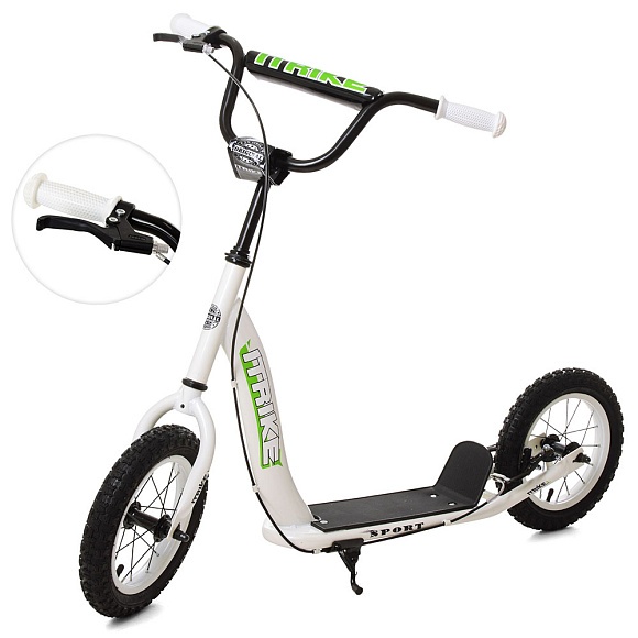 Самокат SR 2-043-1-W підлітковий, 2 кол.-гума 12д, кермо, до 60 кг, підніжка, ручні гальма, білий.