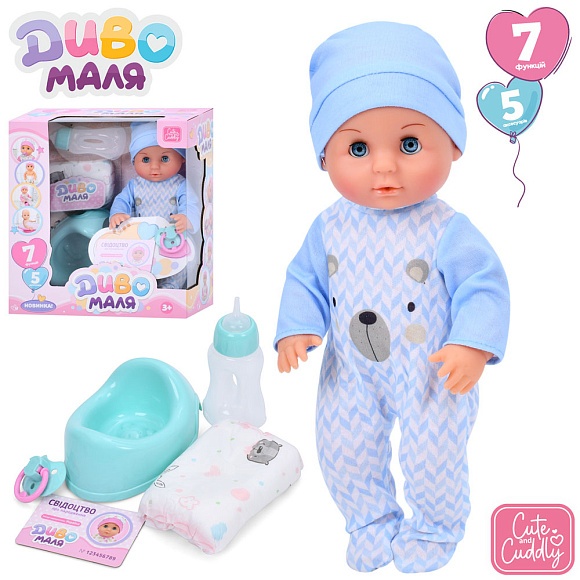 Пупс YL2430L-T-DM-UA п'є-пісяє, горщик, пляшечка, соска, підгузок, кор., 26,5-29,5-14,5 см.