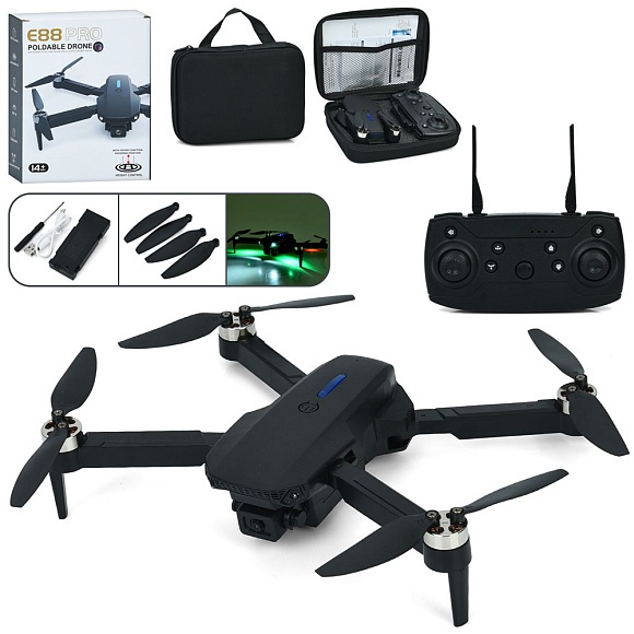 Квадрокоптер E88-4 радіок.2,4G,акум.,камера,складний,USB,запасні лопаті,чохол,світло,кор.,17,5-22-22