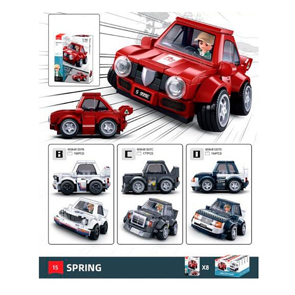 Опис Конструктор sluban m38-b1207 авто серія,машина,1:40,фігурка,4 види (від 156дет),8шт. в диспл.,30-19,