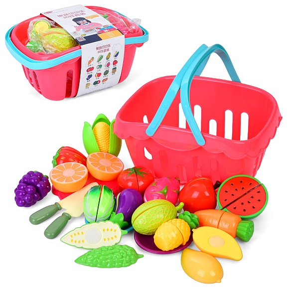 Опис Продукти 8311 на липучці, овочі, фрукти, корзина, дошка, ніж, 20предм, в карт.обгортці, 27-13-18см