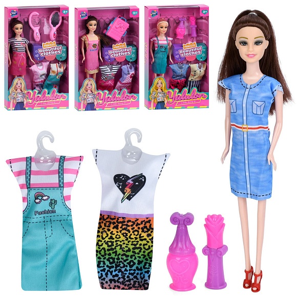 Опис Лялька YL820-31-33 (72шт) лялька з вбранням, 27см, плаття 2шт, аксесуари, 4 види, в кор-ці, 19-33-5см