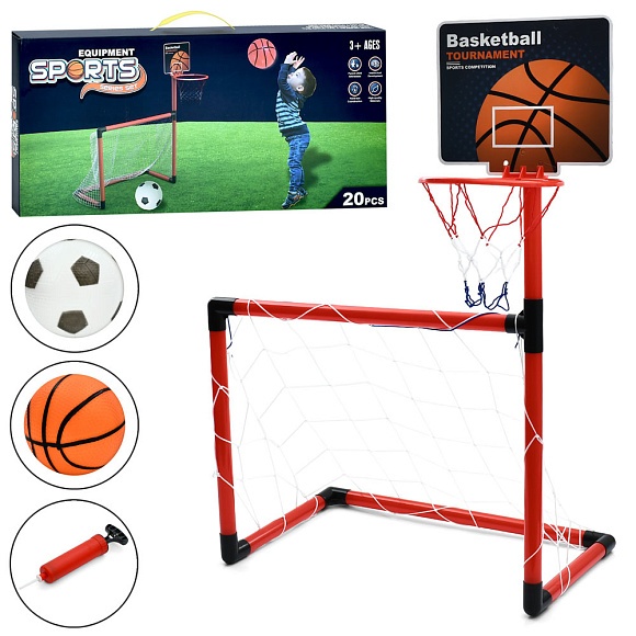 Футбольні ворота MR 1525 2в1(баскет.кільце,пласт.),сітка 2шт.,м'яч 2шт.,насос,20 дет.,кор.,51-23-5см