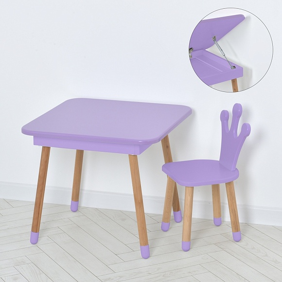 Опис Столик 09-025V-BOX зі стільчиком, корона, ящик, бузковий.