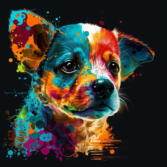 Опис Набір для розпису по номерах Барвисте цуценя Strateg на чорному фоні розміром 40х40 см (AV4040-20)