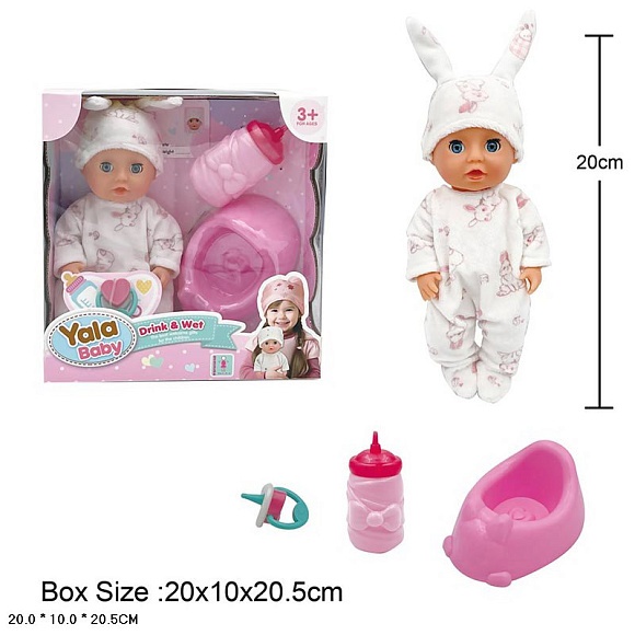 Пупс YL2420B-A п'є-пісяє, пляшечка, соска, кор., 20-20,5-10 см.