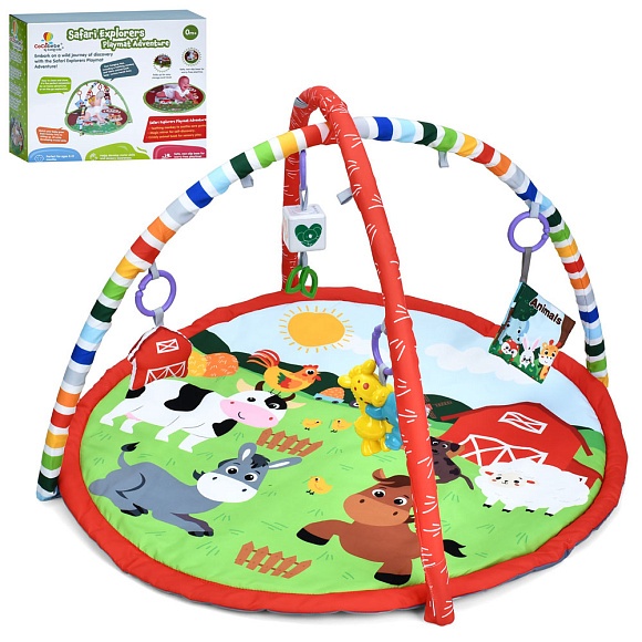 Опис Килимок для немовляти 63634f 82см, дуга 2шт, підвіски 4шт (брязкальце, пискавка), в кор-ці, 38-30-13см