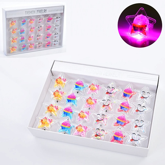 Опис Каблучка FG240408011A зірка, мікс видів, світло, бат. (табл.), 24 шт. в диспл., 20,5-15-4 см.