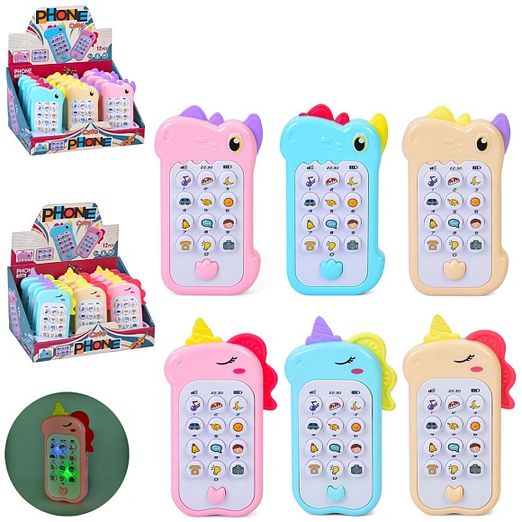 Телефон мобільний 335-72-73 звуки тварин,звуки транспорту,2 види,муз.(анг),бат.,12шт. в диспл.,26-16