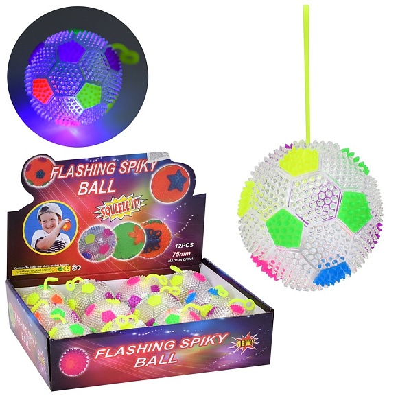 М'яч дитячий MS 4287 довга ручка, текстурний,пискавка,світло,бат.(табл), 12шт. в диспл.,30-22,5-8см
