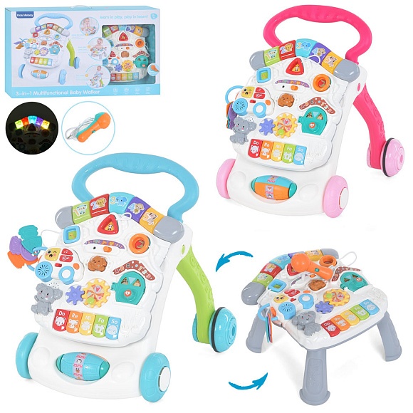 Каталка-ходунки 6605A 2в1 столик,піанино,гризунок,шестерні,2кольори,муз.,світло,бат.,кор.,76-45-12см