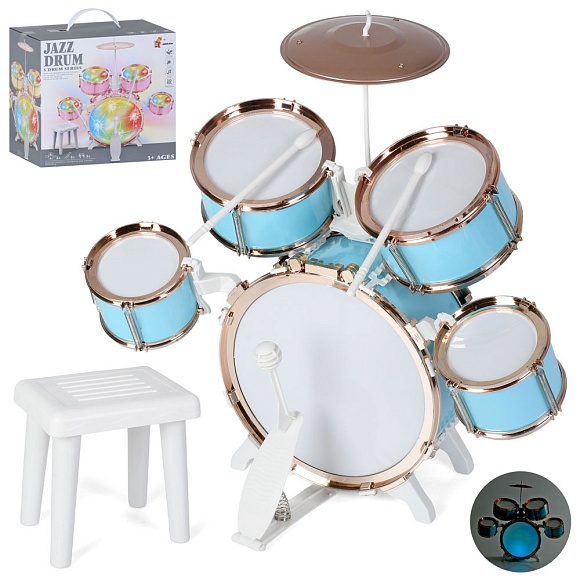 Опис Барабан dxbl880-2 5шт., барабанна установка, стільчик, світло, бат., кор., 29,5-29,5-17 см.