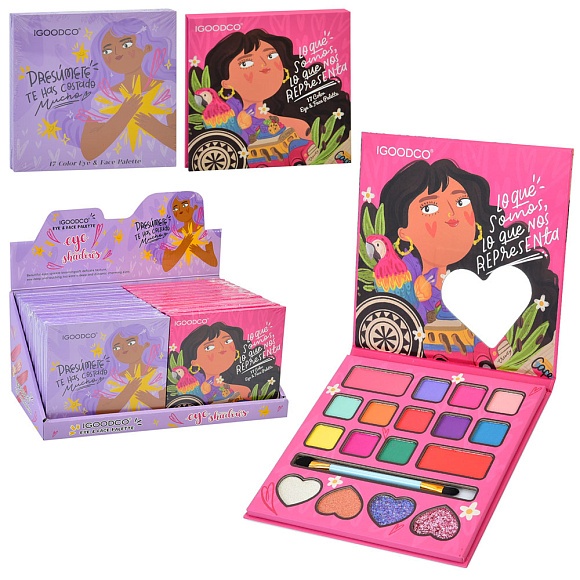 Опис Косметика IG3691 тіні, палетка (17 кольорів), дзеркало, пензлик, 24 шт.(2 види)в диспл.,31,5-15-15см