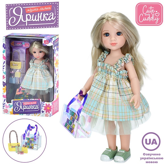 Опис Лялька M 6073 I UA Яринка, 5 пісень, сумка, аксесуари, муз. (укр.), бат. (табл.), кор., 20-33-8,5 см