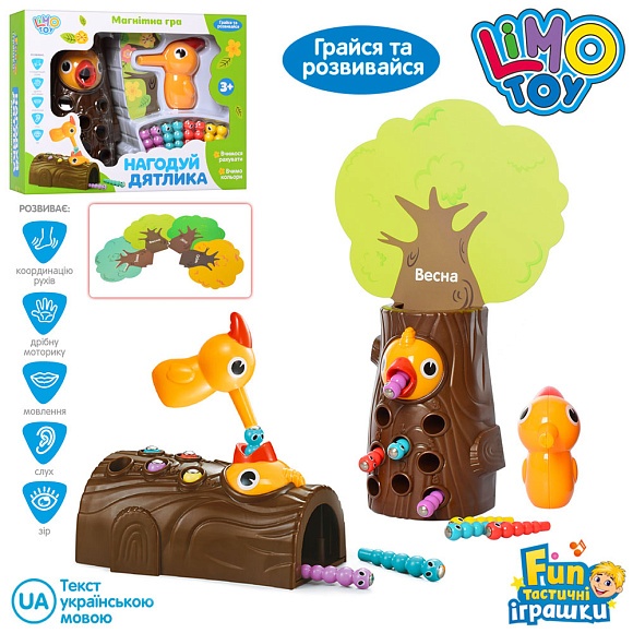 Опис Гра FT 0015 Нагодуй дятла, магнітна, пташка, гусениці, кор., 27-21-10,5 см.