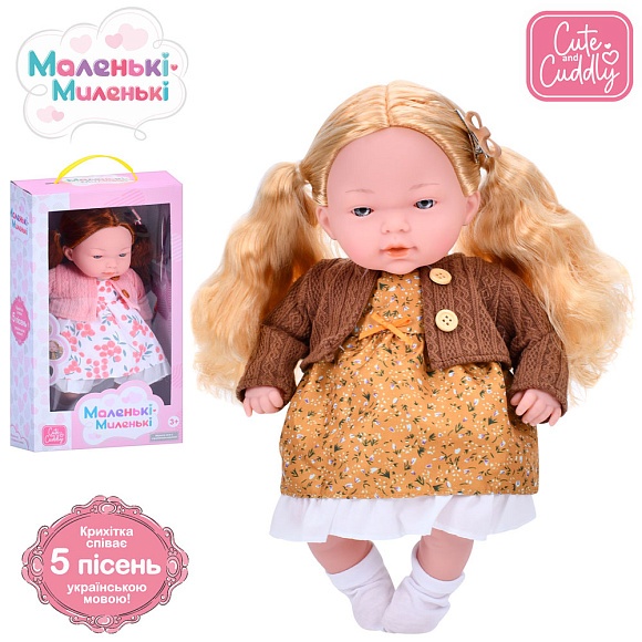 Опис Лялька M 5883 I UA м'яконабивна, 5 пісень, 2 види, муз. (укр.), бат. (табл.), кор., 21-36-10,5 см.