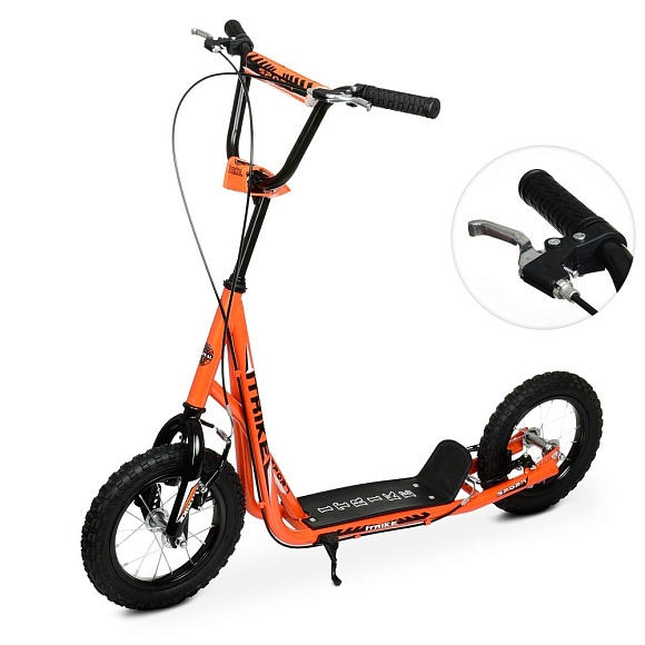 Самокат SR 2-045-3-OR дорослий, сталь, 2 кол.-гума 12д, підніжка 28-11см., ручне гальмо, помаранч.