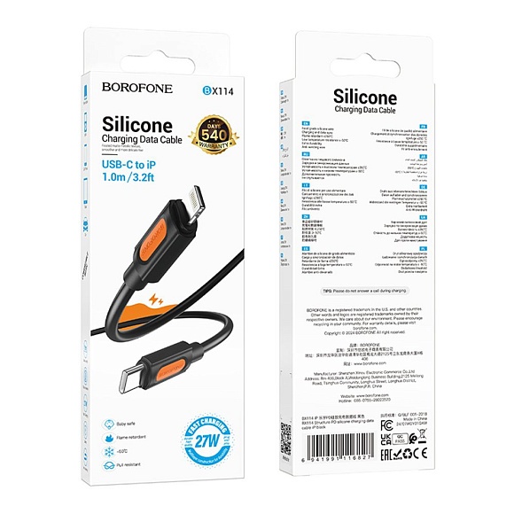 Опис Кабель USB Borofone BX114 Silicone Type-C to Lightning PD27W (Чорний)