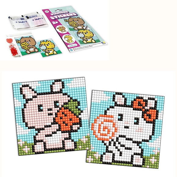 Опис Набір з алмазною мозаїкою на самоклеючій основі для дітей "Милі зайченята" 9x9см
