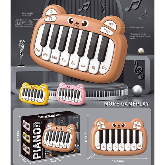 Опис Піаніно hm-11 регул. гучн., картки, змін. режими, 3 види, муз. (англ), світло, бат.,кор.,15-10,5-4см
