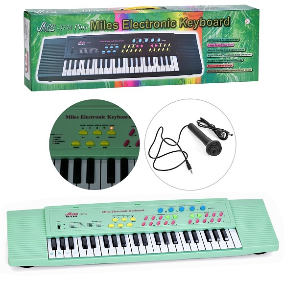 Синтезатор HY3738G мікрофон, запис, рег.гучності, музичні інструменти, USBшнур, муз.,кор.,78-24-9см.