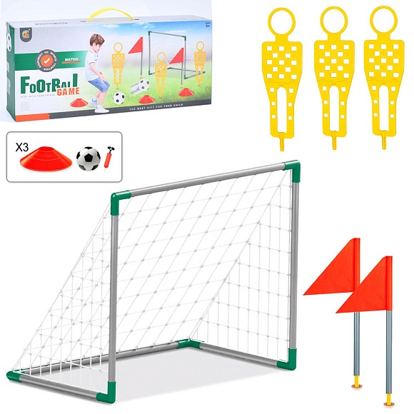 Опис Футбольні ворота mr 1217 сітка, м'яч, насос, прапорці, кор., 52-23-7 см.