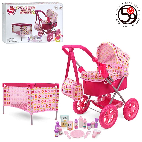 Опис Набір гральний T837048 для ляльки,коляска класика(спальне місце 43-23см),рег.ручка,сумка,манеж,аксес