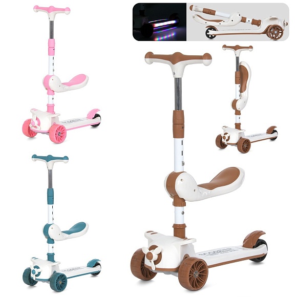 Самокат JR 3-091 3в1 (біговел),метал+пл,3кол.ПУ ,3 кольори,підніжка муз.,світло,бат.,кор.,61-26-20см