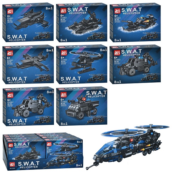 Конструктор 9195A військовий транспорт, 89дет, в кор.,8в1(вертоліт),8шт(8видів) в дисп.,39-14,5-18см
