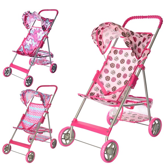Опис Візок 9304 для ляльки, мет., прогулянковий, кошик, кул., 52-33-8 см.