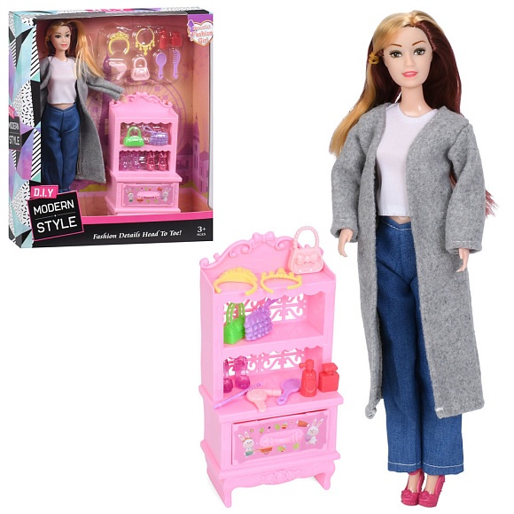 Опис Лялька YY2007A 29см, шарнірні руки, взуття, сумки, аксесуари, шкаф, в кор-ці, 26-32-7см
