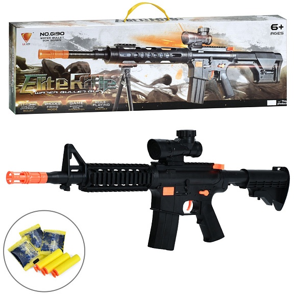 Опис Автомат g160b стріляє водяними кулями, м'які кулі присоски 3 шт., кор., 62-18,5-5,5 см.