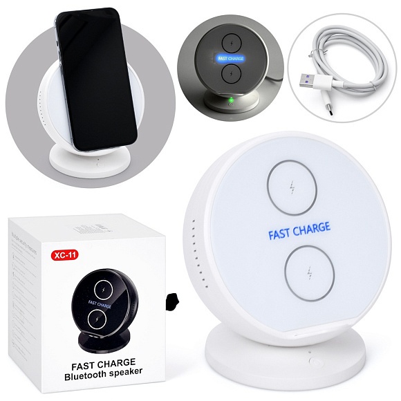 Опис Колонка FG231110038P-1 2в1(бездротовий заряд. пристрій),тримач для телефону,ВТ,3W,мережа/USB,кор.,12
