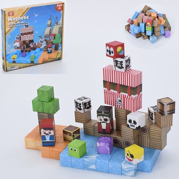 Конструктор ZH005 магнітний, пірати, куб 2см, 100дет, кор, 22-20,5-2,5см