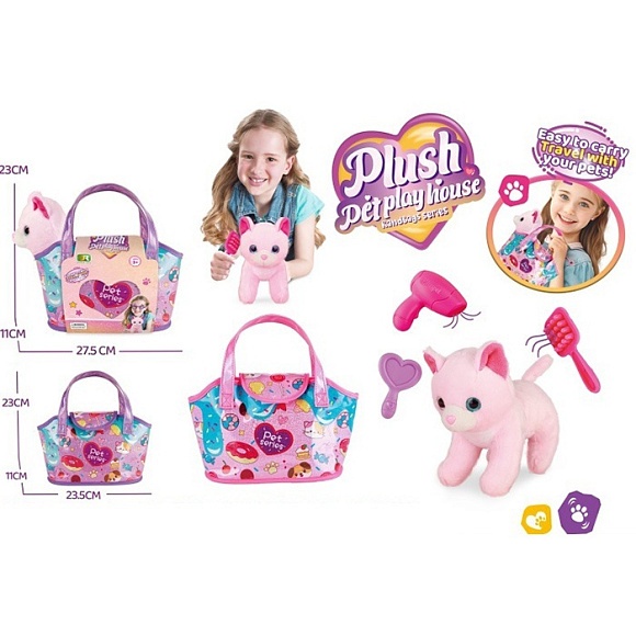 М'яка іграшка у сумочці DR5153 кошеня,набір грумера(фен,гребінець),окуляри,сумка,карт.обг.,23-20-11