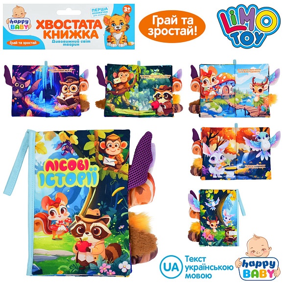 Книжка HB 0087 Лісові історії,хвостата кн,15-22см,дикі твар, пет.з липуч,шурш.у пак.22-31-3см