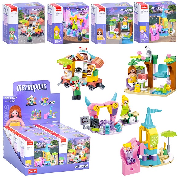 Опис Конструктор SLUBAN M38-B1329 рожева серія,фігурка,від 60дет.,кор.,8шт.(4види)в диспл.,24,5-25,5-12,5