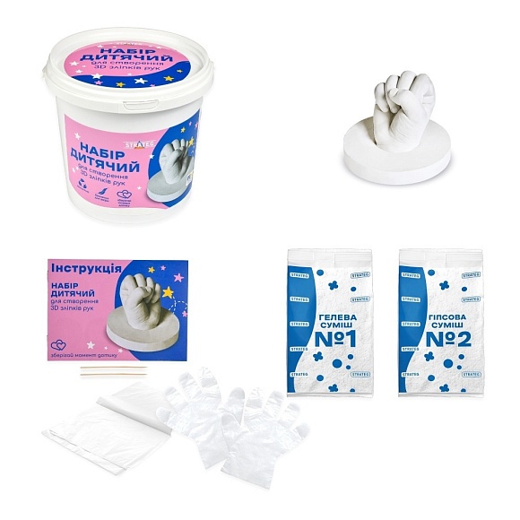 Опис Набір для творчості Strateg Набір дитячий для створення 3D зліпків рук (30909)