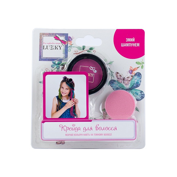 Опис Дитяча пудрова крейда для волосся рожева, зі спонжем перепак.