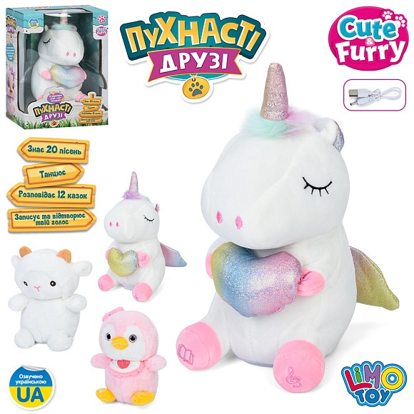 Опис Тварина m 6162 i ua 20 пісень, запис, 12 казок, рухлива, плюш, акум., usb, 3 види, кор., 20-27-15 см