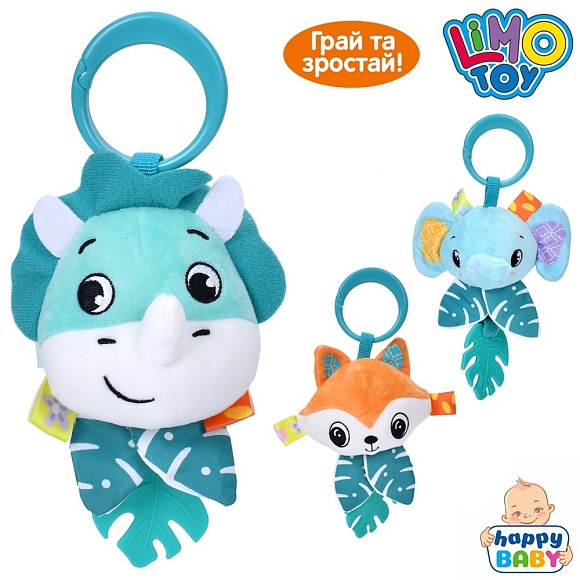 Опис Підвіска м'яка hb 0054 abc на візок/на ліжко, тварина, прорізувач, плюш, 3 види, кул., 12-12-5 см.