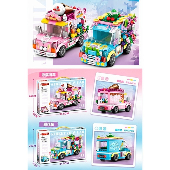 Опис Конструктор L33011 міська серія, магазин на колесах, 2 види (морозиво 232 дет., квіти 247 дет.),кор.