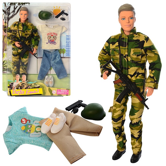 Опис Лялька з вбранням defa 8412 Кен, шарнірний, зброя, 2 види, лист, 25-32,5-5 см.