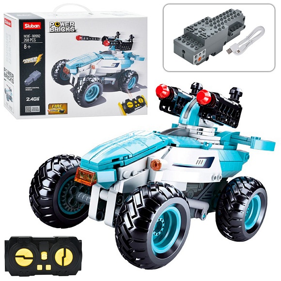 Опис Конструктор sluban m38-b0992 радіокер.2.4g, акум., позашляховик, стріляє,268дет.,usb,кор.,38-28-10см